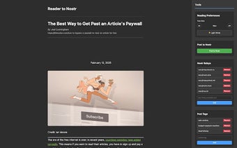 ReadToRelay to darmowy dodatek do przeglądarki Chrome, który ułatwia czytanie treści z różnych stron internetowych. Program pozwala na ekstrakcję zawartości w trybie czytania i publikację jej w formacie markdown na platformie Nostr. Dzięki temu użytkownicy mogą cieszyć się długimi artykułami w bardziej przystępnej formie, eliminując zbędne elementy graficzne oraz reklamy.